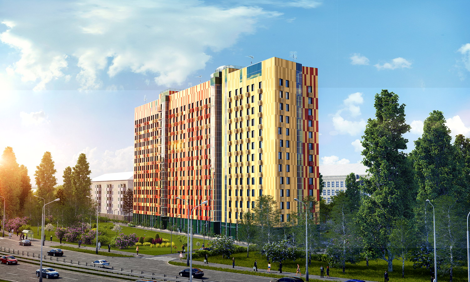 Вокруг гостиницы будут зеленые насаждения, современная детская площадка, парковка. Под зданием разместится гараж.